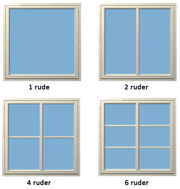 Et vindue med fx 6 små glasfelter tæller altså som 6 ruder.
